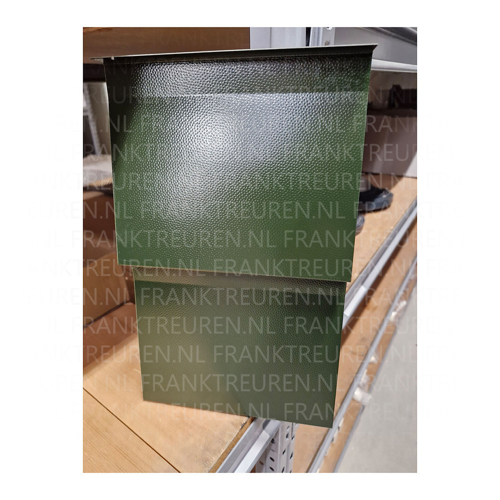 Dit profiel is gezet van Sendzimier verzinkt staalplaat voorzien van de unieke plastisol Houtnerf structuur in de kleur 12B29 Juniper green 200 mu. Wordt gebruikt voor het optisch mooi afwerken van de ruimte tussen de twee platen die bij elkaar komen.